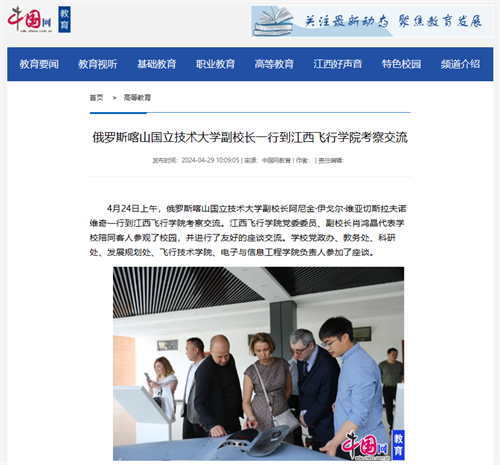 多家媒体报道:俄罗斯喀山国立技术大学副校长一行来江西飞行学院考察交流